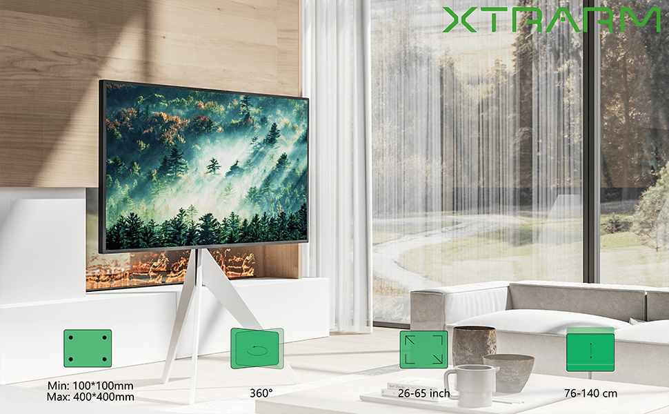 Este soporte cuenta con una capacidad máxima de carga de 40 kg, asegurando la estabilidad y seguridad de tu televisor. Su diseño permite una rotación de 360 grados, ofreciendo flexibilidad y comodidad para disfrutar de tus programas favoritos desde cualquier ángulo. Además, la altura total de 140 cm se puede ajustar fácilmente, gracias a los soportes VESA horizontales que permiten una instalación personalizada.