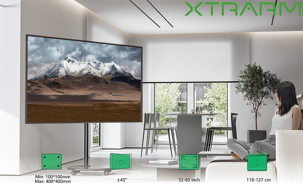 El soporte de suelo para televisor Arius de la marca holandesa XTRARM combina un diseño elegante con una funcionalidad excepcional. Ideal para cualquier ambiente, su base redonda y el mástil de acero garantizan estabilidad y estilo.