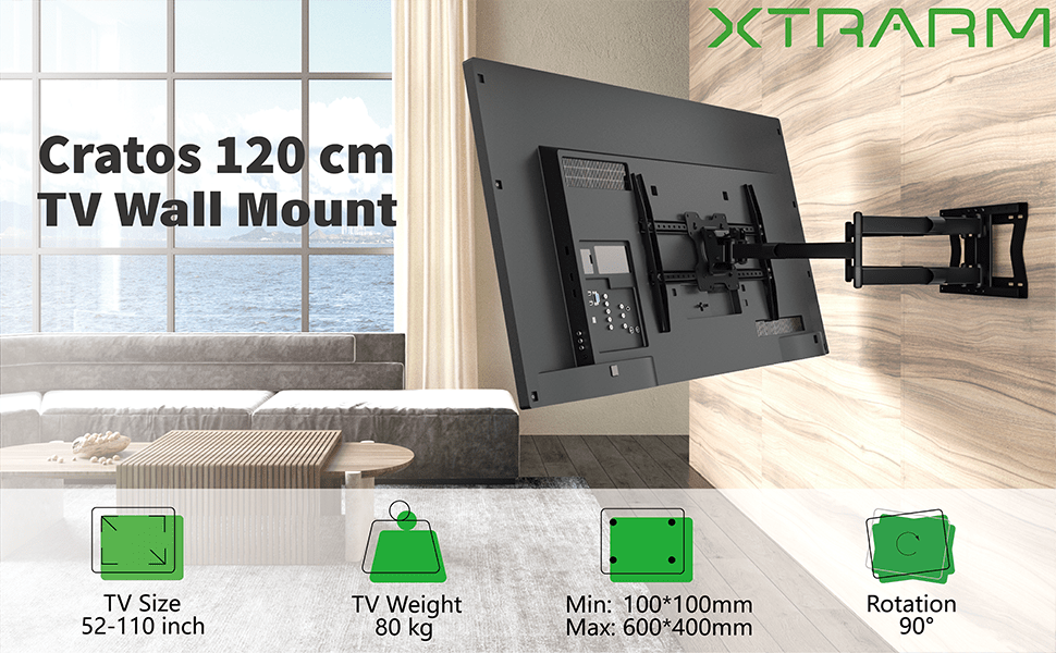 Descubra el soporte de TV revolucionario Cratos, la última innovación de la marca de calidad holandesa XTRARM. Este soporte de TV de pared no solo es una solución funcional, sino también un cambio de juego en el montaje de televisores. Con un alcance impresionante de 120 cm, el Cratos establece nuevos estándares en flexibilidad y rendimiento.
