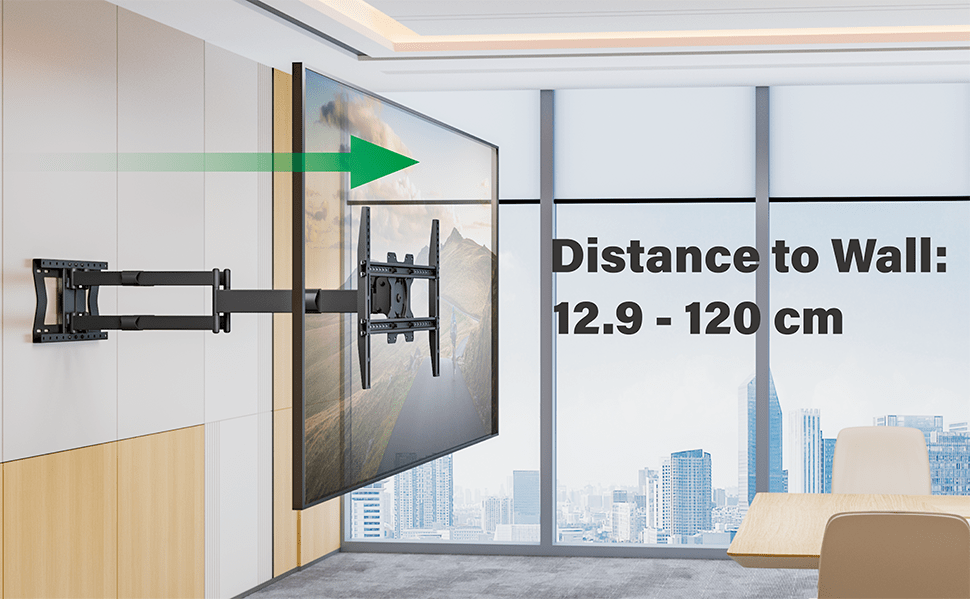 La construcción de doble brazo proporciona una libertad de movimiento sin precedentes. Gracias a su sistema de rotación único, puede cambiar entre los modos paisaje y retrato sin esfuerzo, adaptándose a cualquier espacio moderno. Este soporte es capaz de sostener televisores de hasta 80 kg y es compatible con tamaños de pantalla de hasta 110 pulgadas, además de tener una capacidad VESA de hasta 600x400 mm.