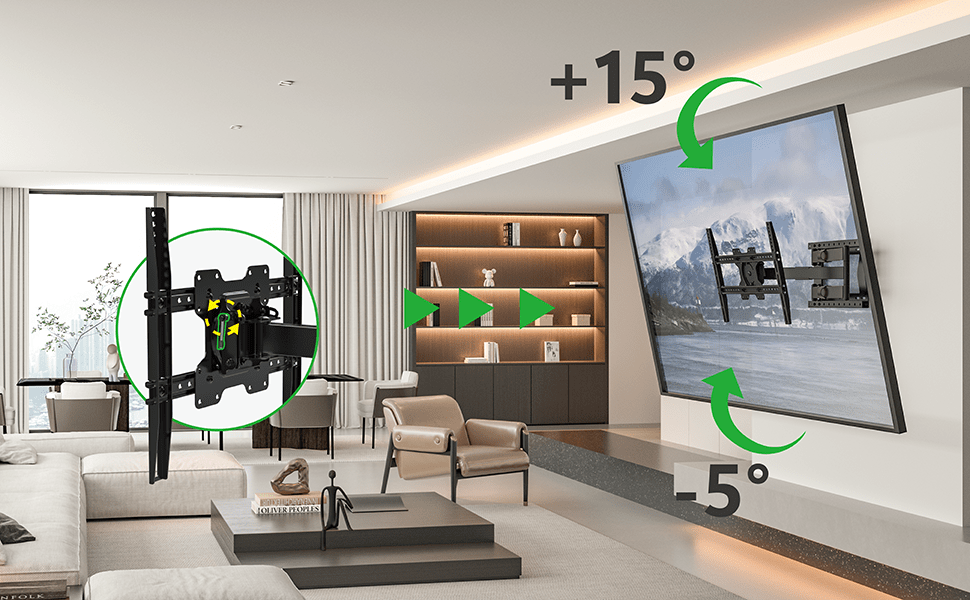 - Inclinación: Ajuste vertical de 15° hacia abajo y 5° hacia arriba para una visualización óptima.