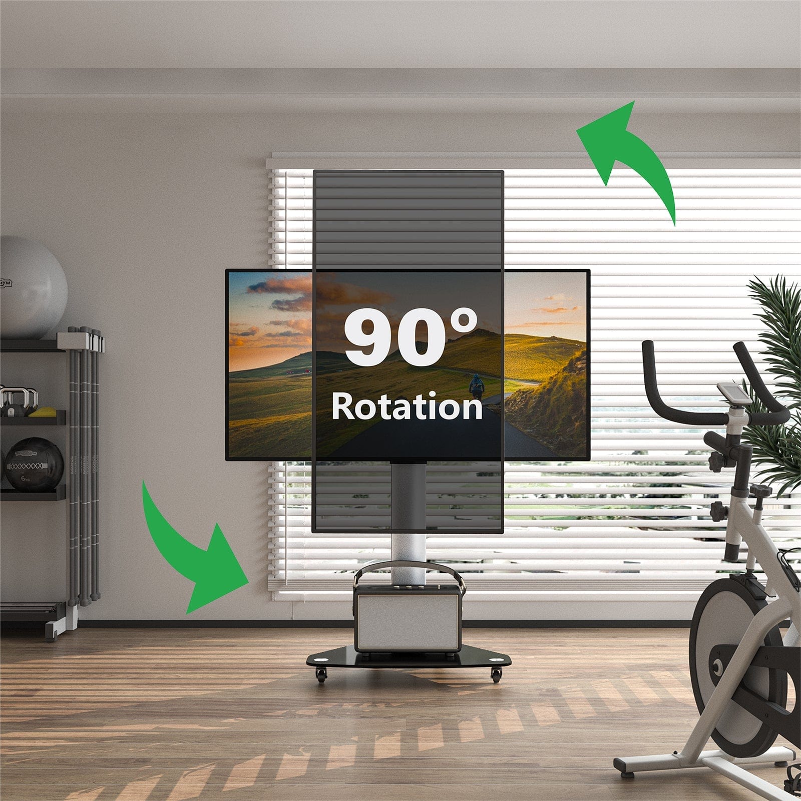 - Movilidad: Equipado con cuatro ruedas, dos de ellas con frenos, permite mover el soporte fácilmente de una habitación a otra y fijarlo de forma segura.