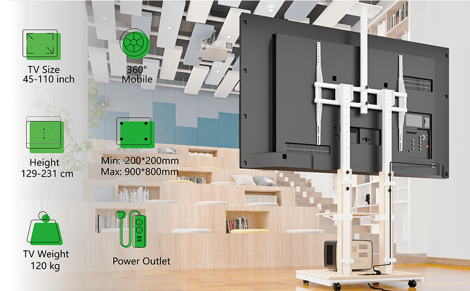 Descubre el elegante DQ Adrian 1, un soporte de TV móvil que combina funcionalidad y diseño contemporáneo. Este soporte es ideal para cualquier espacio, ya sea en un entorno profesional o en tu hogar, ofreciendo versatilidad y estabilidad.