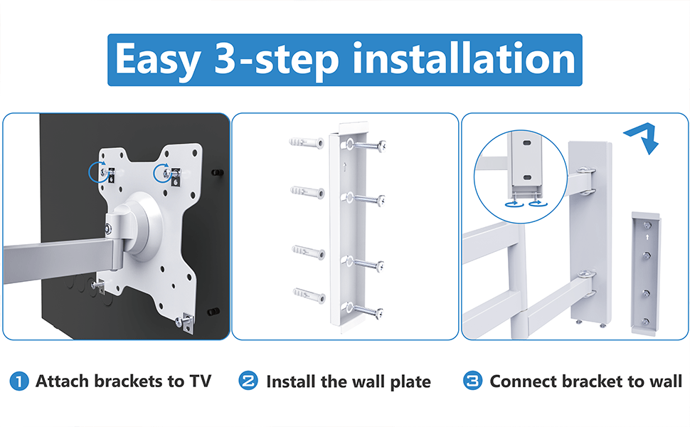 La distancia entre la pared y su televisión varía entre 8,5 cm en posición plegada y 108,5 cm en posición desplegada, lo que le permite personalizar su espacio según lo desee. Además, su tamaño de montaje VESA es compatible con formatos de hasta 200x200 mm.